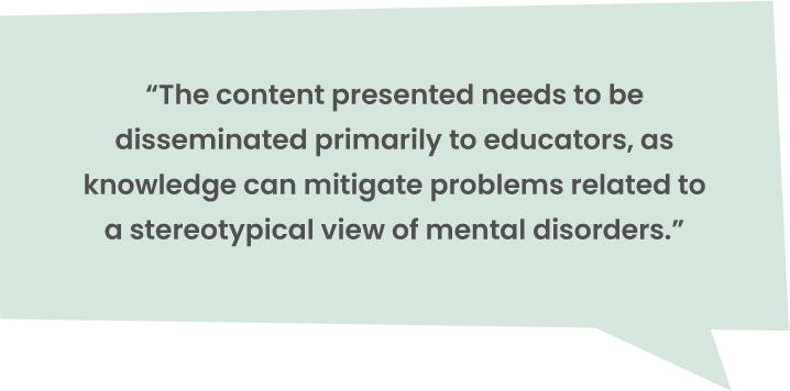 Our goal is to empower educational professionals to promote mental health, combat stigma, prevent mental disorders, and minimize the impact of illness among students.
