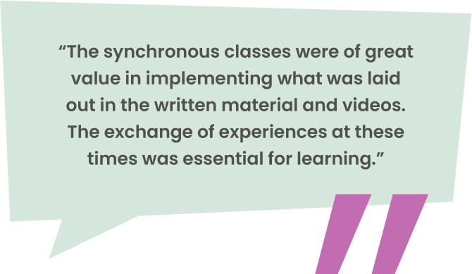 This journey, developed by our mental health experts, combines distance learning strategies, ensuring a hybrid, qualified, accessible experience with great potential for scaling.